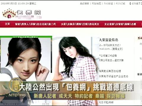 【新唐人2010年5月14日訊】進入五月以來,一個號稱提供“包養仲介服務”的網站鏈結,開始在網路論壇和QQ群中流傳。在該網站主頁上,赫然寫著“中國最大的富豪包養網站”,也很快的在網上引發劇烈爭議。