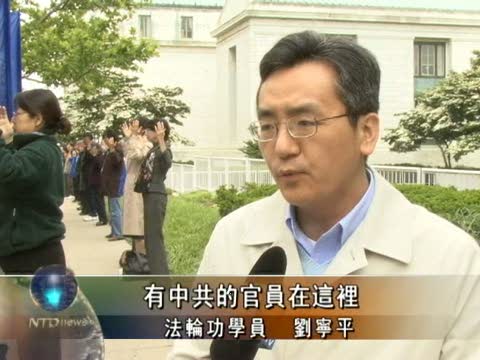 法輪功學員劉寧平:今天是中美人權對話的第一天,有中共的官員在這裡。我們首先是抗議中共對法輪功的迫害。這場迫害已經進行了將近十一年了,而且還在繼續進行著。