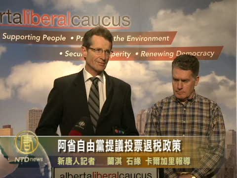 【新唐人2010年5月15日訊】面對阿爾伯塔省越來越低的選民投票率,阿省官方反對黨自由黨領袖大衛‧斯旺提出了意在鼓勵更多人參與投票選舉的投票退稅建議。請看來自卡爾加里的報導。