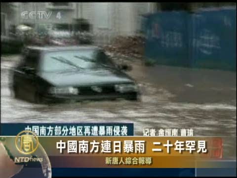 【新唐人2010年5月15日訊】中國大陸繼西南大旱後,南方廣東、湖南、江西等地5月以來又連遭暴雨襲擊。目前共有10個省市、142個縣市嚴重受災,直接經濟損失達59億元人民幣。