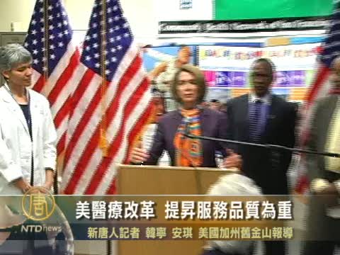 【新唐人2010年5月18日訊】針對美國通過的醫療改革方案,目前正在逐年推動實行中。美國國會眾議院議長南希·佩洛西五月十七日,星期一在舊金山社區醫療中心表示,醫療改革後,讓社區中低收入家庭得到提升品質的健康保險服務。請看報導。