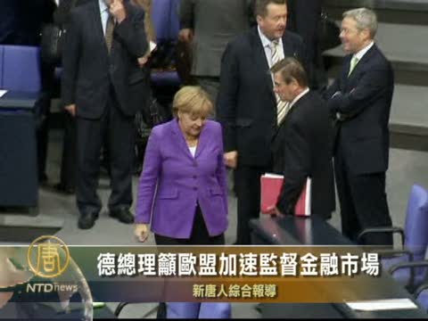 【新唐人2010年5月19日訊】德國總理默克爾呼籲歐盟加速對金融市場的監督,包含對金融活動課稅、以及懲罰賣空行為等等,並表示歐元面臨著生存考驗。