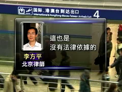 北京律師李方平:「因為這是一個公民的基本自由,根據國內的行政程式來講,這樣限制公民出境,而且不告知任何理由的這樣的做法,也是沒有法律依據的。」
