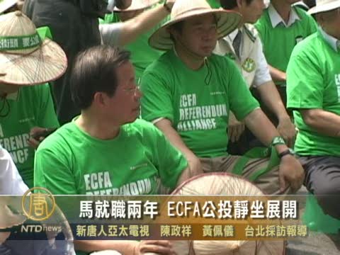 【新唐人2010年5月20日訊】5月20日中華民國是總統馬英九就職滿兩週年,而由前行政院長謝長廷結合本土社團,發起為期3天的「ECFA要公投」靜坐活動也在當天展開,下面帶您來看當天下午的現場情況。