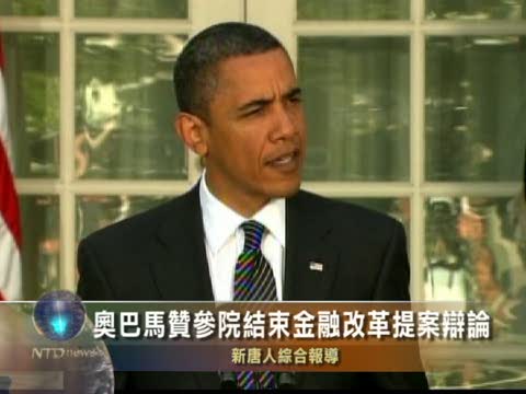 【新唐人2010年5月21日訊】星期四(5月20日),美國參議院以60比40結束金融監管提案的辯論,從而為最終通過該法案鋪平了道路。對此,歐巴馬總統表示滿意。