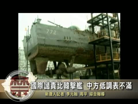 【新唐人2010年5月21日訊】南韓聯合調查組5月20號正式發表「天安號」反潛護衛艦爆炸沉沒原因報告,指責北韓魚雷襲擊造成天安艦沉沒,造成南韓46名水兵喪生。引發國際社會對北韓的強烈譴責,南韓表示將對北韓採取嚴厲的回應措施。中國外交部反應低調,不過官方媒體也表達了對北韓的不滿。