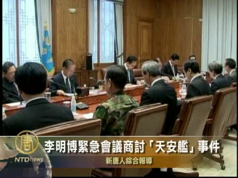 【新唐人2010年5月21日訊】韓國總統李明博星期五(5月21日)上午召集國家安全委員會緊急會議,討論如何就3月份“天安艦”被朝鮮魚雷擊沉事件懲罰平壤。