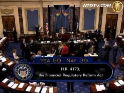 【新唐人2010年5月21日訊】星期四晚間,美國參議院以59票贊成,39票反對,通過了銀行改革法案。 這項法案被認為是自上個世紀三十年代大蕭條以來對銀行業最重大的改革。