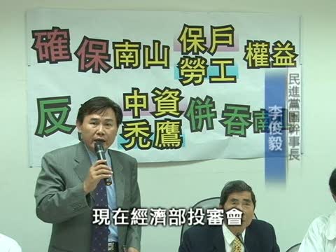 民進黨團幹事長 李俊毅:「因為現在經濟部投審會,我們判斷可能會在立法院休會期間,針對併購案,進行審查,進行決定,所以黨團這邊今天作成一個決定,就是反對中資來併購南山」