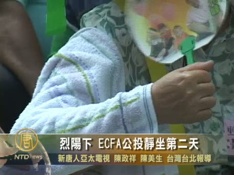 【新唐人2010年5月22日訊】總統馬英九執政兩週年,大舉開放兩岸往來,六月馬上就要來跟與中國洽簽ECFA,引發民眾強烈質疑。在野黨發起ECFA公投靜坐進入第二天,呼籲馬政府正視。