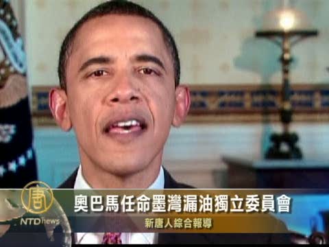 【新唐人2010年5月23日訊】星期六(22日),美國總統歐巴馬在每週廣播與互聯網演講中,誓言讓相關公司承擔墨灣漏油災難的責任,同時任命了墨灣石油泄漏獨立調查委員會,要求能防止此類事件再度發生。