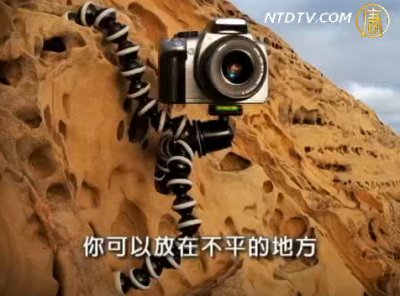 Joby 公司產品銷售主任 Jenny Barchas :“這是大猩猩支架,我們於2006年投入市場,是世界第一個易彎的照相機 三角架,你可以捲起來,你可以放在不平的地方,仍然可以平穩的拍攝。我們現在做了四種不同的尺寸,這種可以架住11磅,或是5公斤的攝像器材,我們也做不同的轉接器 和附件,我們有iphone 套子,你可用於在飛機上看電影或拍照。我們還有大猩猩火把,就是手電筒,同樣是可彎、可捲曲的腳架,腳架底部還有磁石,可放於車蓬上,冰箱上,或於露營時纏繞在樹枝上,取得燈光。”