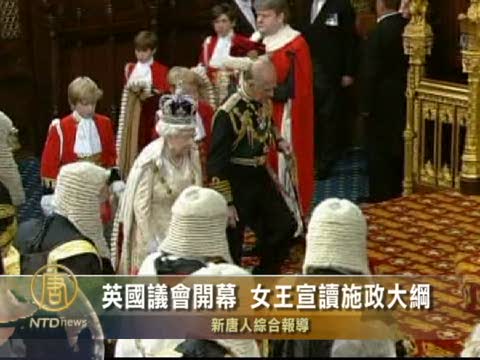 【新唐人2010年5月26日訊】英國女王伊麗莎白二世週二(25日)在年度議會復會儀式上,宣讀了新任保守黨和自由民主黨聯合政府未來一年的施政大綱。