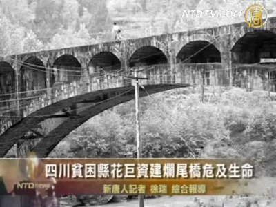 【新唐人2010年5月26日訊】四川省通江縣是國家級的貧困縣,有多座橋樑由於修建時偷工減料,沒幾年就變成了危橋,無法使用。有些甚至是縣內上萬民眾省吃儉用集資修建的橋也逃不過有關部門的盤剝。面對這些危橋,地方政府以財政困難為名拒絕拆橋重建,百姓只有冒著生命危險過橋。