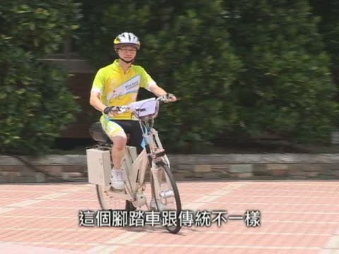 彰化建國科技大學講座教授 徐佳銘:「這個腳踏車跟傳統不一樣是它沒有鏈條,沒有鏈條是他腳踩了一個發電機,那個發電機腳踩的力量越大,輸入越大,發電量越多,發電量出來的當然就存到蓄電池 裡面去。」