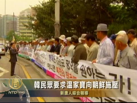 【新唐人2010年5月28日訊】星期五,1百多位韓國公民團體,在中共總理溫家寶到訪與韓國總統李明博開會之際,在韓國外交部附近集會,要求北京當局向其共產主義盟友施壓,將天安艦沉沒事件的真實調查結果,傳達給朝鮮當局。