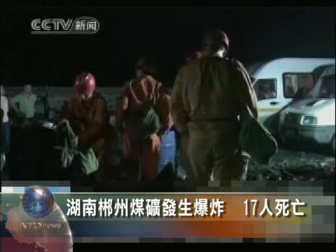 【新唐人2010年5月30日訊】據中共官方媒體報導,週六下午,中國湖南省郴州市汝城縣一座煤礦內存放的炸藥發生爆炸,產生大量有毒有害氣體,致使井下作業的17名礦工遇難,1人受傷。