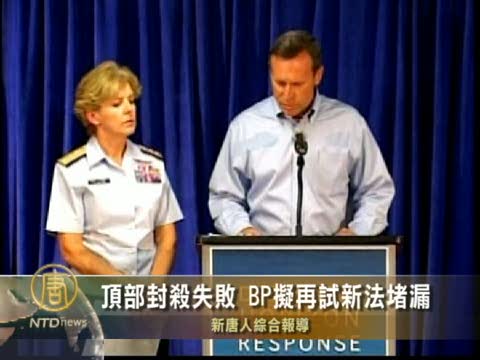 【新唐人2010年5月30日訊】英國石油公司BP週六宣佈,為遏制墨西哥灣漏油,最新採取的“頂部封殺“的措施再次失敗,該公司將嚐試新的措施。歐巴馬總統說,這“令人憤怒和心碎”,當局將盡一切辦法解決漏油事件,但預計困難不少。
