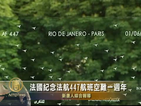 【新唐人2010年6月2日訊】6月1日,是法國航空公司447航班空難一週年紀念日,法國為此舉行了紀念活動,悼念這次空難的228名遇難者。