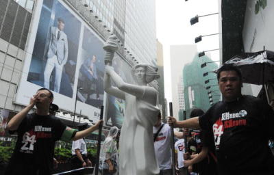 【今日點擊】女神像又被搶 港人燒中共黨旗