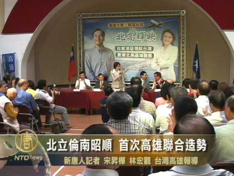 【新唐人2010年6月2日訊】國民黨為拉抬選舉氣勢,2號上午高雄市長參選人黃昭順和新北市長參選人朱立倫在高雄市議會聯合造勢,現場邀請各界人士100多人到場壯聲勢,請看下面的報導。