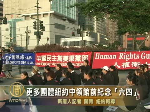 【新唐人2010年6月3日訊】隨著六月四號臨近,更多團體到紐約的中領館前舉行紀念「六四」二十一週年的活動。