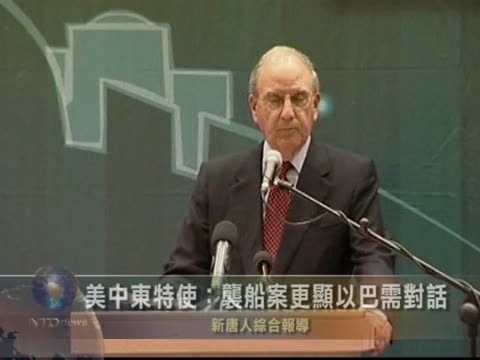 【新唐人2010年6月4日訊】美國中東特使喬治.米切爾(George Mitchell)星期四表示,以色列攔截加薩救援船隊事件不應該影響以色列和巴勒斯坦之間的間接和談,相反,悲劇的發生更加顯示出雙方之間需要進一步談判。