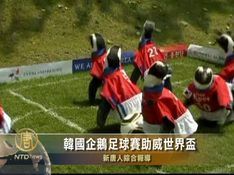 【新唐人2010年6月4日訊】正當世足賽如火如荼進行之際,韓國愛寶樂園的企鵝星期四(6月3日)也踢起了牠們自己的世界盃,同時也展現了對韓國的支持。