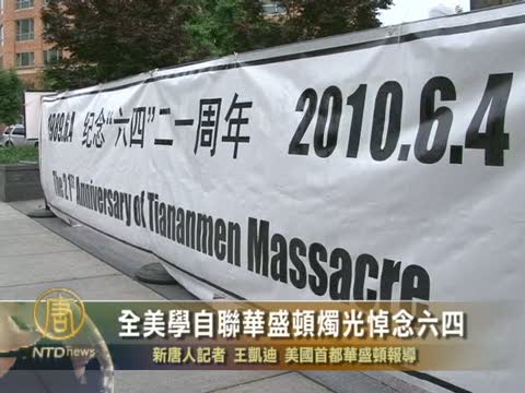 【新唐人2010年6月5日訊】6月4日晚,在美國首都華盛頓,由全美學自聯主辦的“六、四”21週年燭光悼念活動在“共產主義受難者紀念碑”前舉行。主辦者將今年的自由精神獎授予王炳章博士。