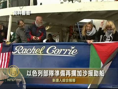 【新唐人2010年6月5日訊】在致命襲船案發生5天後,以色列海軍準備攔截,計劃星期六(6月5日)抵達加薩的瑞秋科里號(Rachel Corrie)援助貨船。