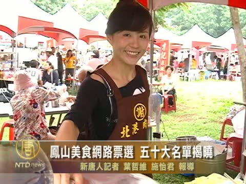 【新唐人2010年6月7日訊】為了推廣鳳山美食小吃,鳳山市公所舉行了網路票選活動,經過一個月的網路投票,在6號上午舉行頒獎活動,由市長許智傑公布入選店家,商家也在現場擺設攤位,推銷自家產品特色,請看下面報導。
