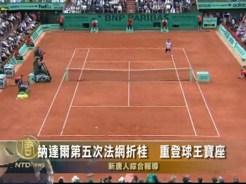 【新唐人2010年6月7日訊】在星期天(6月6日)的法國網球公開賽男子單打決賽中,賽會四屆冠軍得主納達爾直落三盤戰勝瑞典名將索德林,第5次奪冠,他也因此再次登上世界球王的寶座。