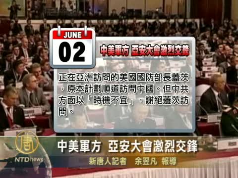 【新唐人2010年6月8日訊】在新加坡舉行的第9屆亞洲安全大會,已經在6日下午結束,在這次會議的眾多熱點話題中,中美軍方高層的激烈交鋒,尤其受到關注。中共解放軍副總參謀長馬曉天在大會上公開發言說,美中兩軍關係發展存在障礙,而美國國防部長也批評中共中斷兩邊軍事交流的做法,沒有意義,究竟美中兩國軍事關係存在甚麼樣的問題,大家一起來關注。