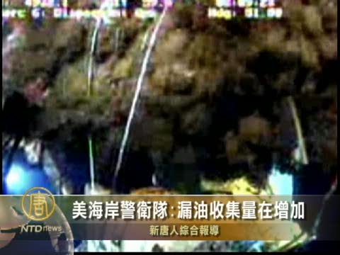 【新唐人2010年6月9日訊】星期二,美國海岸警衛隊表示,收集墨西哥灣漏油的工作正取得進展,每天收集的石油都有增加,但收集石油的船隻還沒有裝滿。石油繼續從破裂油井中泄漏出來。