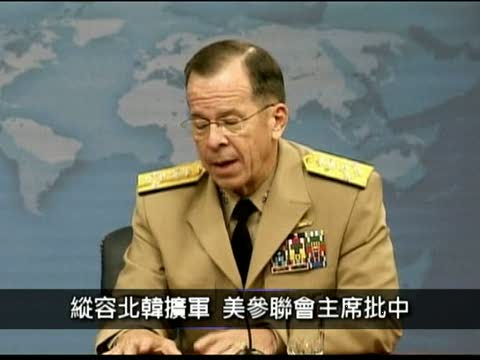 針對北韓擊沉韓國天安艦事件,美國參謀首長聯席會議主席穆倫上將,九日在華府「亞洲協會」(Asia Society)發表演說時表示,北京不支持國際社會對平壤施壓,令他感到氣餒,人民解放軍中斷和美國的軍事交流「尤其令人失望」。他也對中共迅速擴張高科技武器戰力及其戰略意圖表示關切。