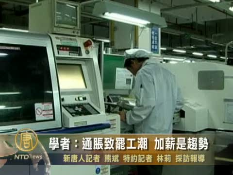 【新唐人2010年6月12日訊】由富士康員工連續跳樓事件和日商本田汽車罷工所引發的調薪效應持續發酵,中國的罷工浪潮越演越烈,本月6、7日臺資企業美律和書元也傳出罷工,大陸學者和維權律師認為,中國罷工潮的發生主要是通貨膨脹的巨大壓力,加薪是必然趨勢。