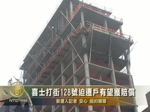 原喜士打街128號樓早已夷為平地,旁邊18層豪華酒店樓正在熱建中。這兩處樓宇均屬同一主人。紐約州房屋與社區更新部租金管理處經過充分調查,最終裁決,新建工程是直接導致128號樓地基受損的原因之一,造成大樓不安全狀態。而且房東通過積極和消極的方法,不履行對大樓的維修義務,並不適當的利用政府部門開拆除令,以達到自己的目地,房東必須依法給予住戶補償。