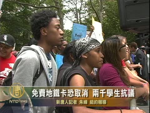 【新唐人2010年6月12日訊】今天(6月11日)中午,兩千多名紐約公校的學生中途逃課,聚集在市政府公園前,舉行大型集會,抗議市政府沒有給出足夠的預算,導致六十萬名學生可能面臨不再免費乘坐公交車。請看本臺記者的報導。