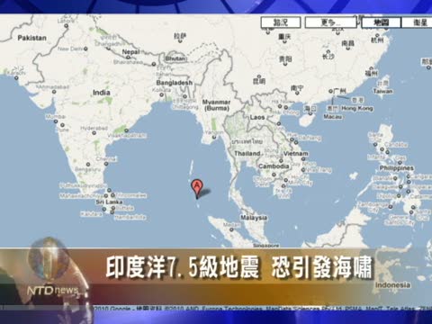 印度洋7.5級地震 恐引發海嘯