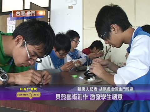 【新唐人2010年6月13日訊】追逐浪花、海邊拾貝是很多人溫馨的童年回憶,撿來的貝殼還可以做成栩栩如生的作品,在緊張的學習之餘,學學粘貝殼,一群金門的高中生們玩兒的不亦樂乎。
