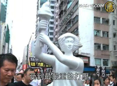 民主女神像是六四事件的標誌之一,89年由北京八所院校的學生在4天之內趕製出來,豎立在天安門廣場上。六四屠城後,海外民主人士在一些城市豎立起民主女神像複製品,以作紀念。香港是中共統治下唯一能公開舉行紀念六四活動的地方,活動規模也是華人世界中最大的,每年6月4日這一天,民主女神像在維多利亞公園豎立,伴隨著數以萬計的市民燭光悼念,已經成為港人不可替代的傳統。然而今年六四21周年前夕,卻發生港警強搶女神像等一連串事件,支聯會主席司徒華怒斥這是支聯會紀念六四21年來所遭到的最嚴重打壓。讓我們一起去看看事情的經過。