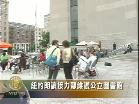 紐約伴隨著人們朗朗的讀書聲迎來了今天的日出。這是一些關心圖書館命運的人士在布魯克林圖書館門前舉行的朗讀活動。他們從前一天下午的5點開始,連續24個小時輪流朗讀不同的書籍,藉此呼籲市政府不要削減對公立圖書館的預算。朗讀接力加上明信片徵集簽名,人們平靜地用文化的方式來尋求問題的解決。