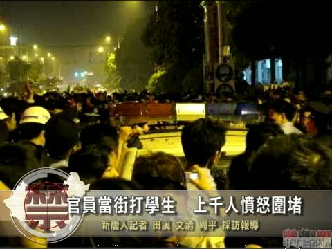 【新唐人2010年6月14日訊】安徽省馬鞍山市一名官員開車撞倒學生後,與學生發生口角,並動手打人,引發群眾強烈不滿。現場數千人圍堵官員的座車,最後警方施放催淚彈驅散人群,事件才告一段落。