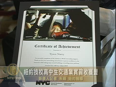 【新唐人2010年6月15日訊】6月14日,在紐約市教育局大樓內為十七名高中生舉行了一個特殊的畢業典禮,慶祝他們在二零一零年春季學期成功完成了為期十四周的實習項目,該項目由紐約市教育局和小商業局等共同發起,讓我們來聽一聽部分學生的心得。