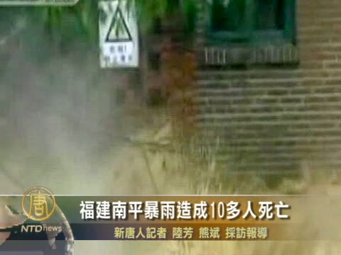 【新唐人2010年6月16日訊】近期中國南方地區正遭遇5月份以來第九輪暴雨天氣襲擊,很多城市被洪水淹沒,14日的ㄧ場大雨使福建省南平市遭遇泥石流災害,兩輛車被衝入溪流,造 成10多人死亡,當地居民還抱怨當地媒體不報導災情。
