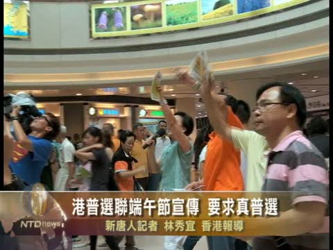 【新唐人2010年6月17日訊】距離香港立法會表決2012政改方案只有一個星期,終極普選聯盟頻頻到各區宣傳,要求政府撤回倒退的政改方案,取消功能組別,儘快落實雙普選。