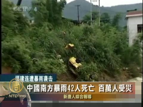 【新唐人2010年6月17日訊】近日中國南方連續降下暴雨,引發洪水和泥石流,已造成福建、廣西、四川、廣東、江西5省區143.2萬人受災,截至星期三因災死亡42人,失蹤數十人,還有數萬人被疏散,倒塌房屋6000多間,直接經濟損失約20.4億元。