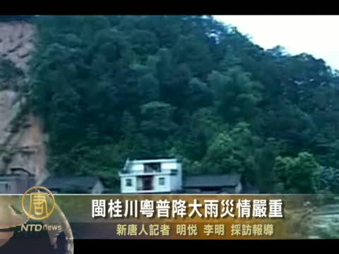 【新唐人2010年6月17日訊】主播:星期三是中國人的端午節,中國的江南、華南地區自13號開始豪雨不斷,甚至引發洪澇災害,許多地區的端午龍舟競賽因而被迫取消。福建、廣西、四川、廣東、江西5省皆傳出災情,其中廣西及四川都因山體滑坡,造成嚴重傷亡。