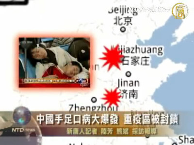 【新唐人2010年6月17日訊】中國近期傳出手足口病疫區被封鎖,山東惠民縣的小孩還遭禁足,有患兒家長向本臺記者反映,因為世博會的原因,當局封鎖消息,導致疫情大面積蔓延。