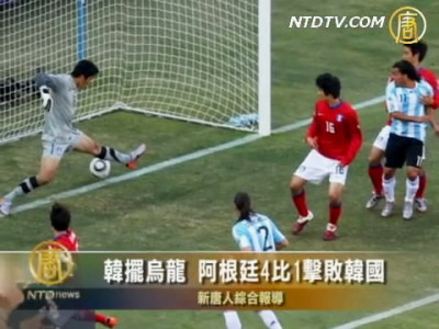 【新唐人2010年6月17日訊】6月17日,世界杯B組第2輪首戰在約翰內斯堡足球城球場展開激烈較量,阿根廷以4比1擊敗韓國隊。